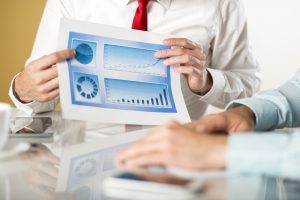 Business people reading graphs and charts